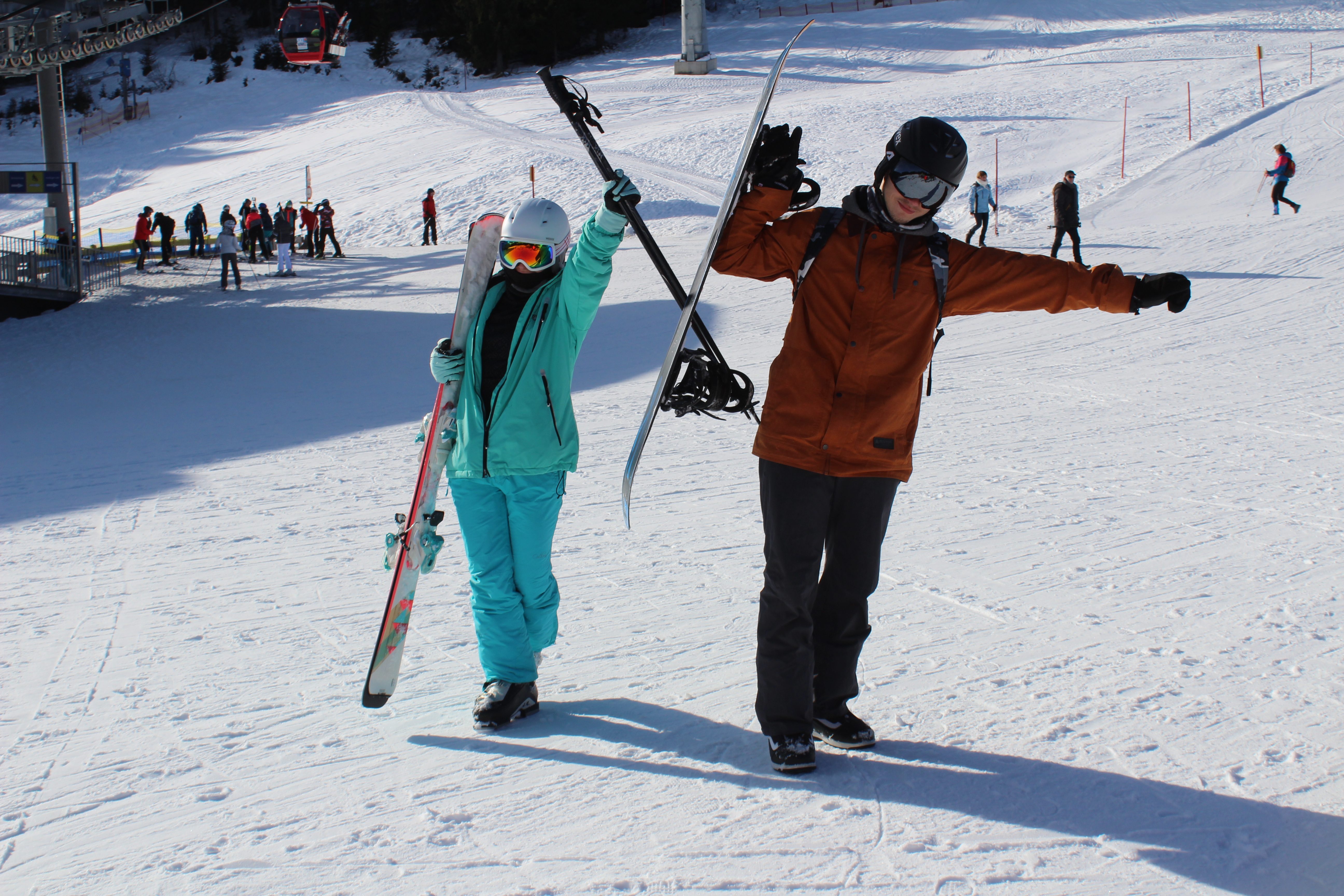 Sprzęt. Dobór sprzętu ma duże znaczenie, odpowiedni pomoże w szybszym robieniu postępów. Z Uczestnikami, którzy nie mają własnego sprzętu, nasi opiekunowie wybiorą się do wypożyczalni, gdzie pomogą dobrać odpowiednie wyposażenie. Dobry sprzęt to także bezpieczeństwo – nasi opiekunowie zadbają, o wyregulowanie siły wypięcia wiązań. Wymagamy, aby każdy Uczestnik miał własny kask narciarski/snowboardowy