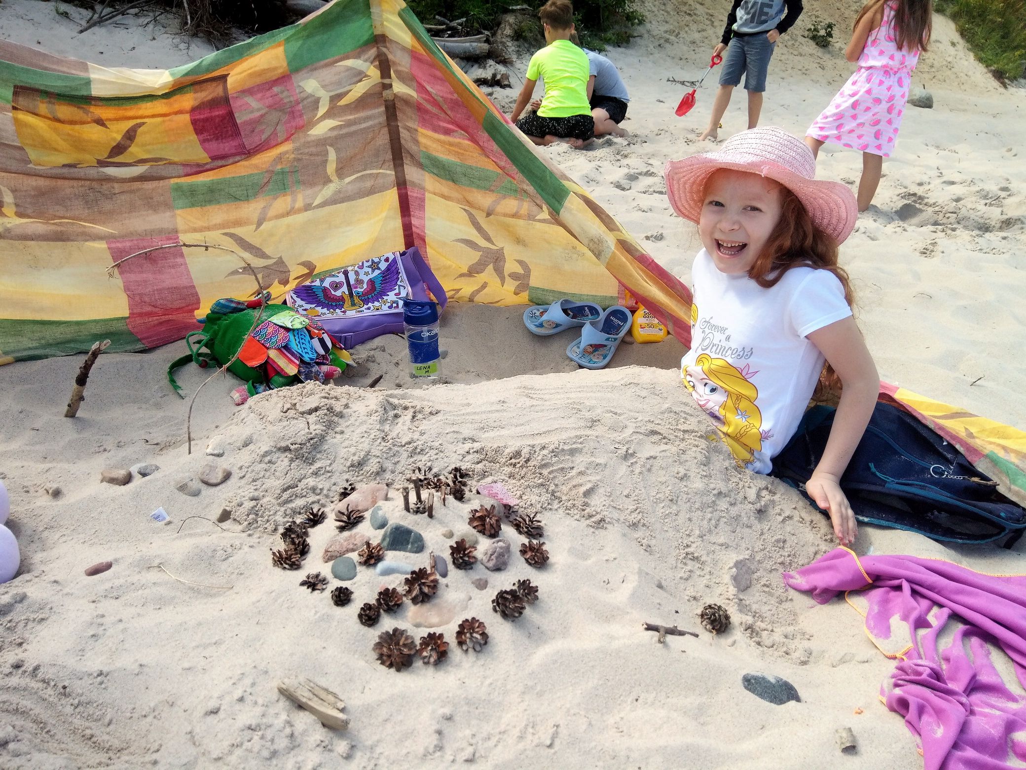• Galeria na plaży: totemy i kolaże z muszelek, kamyczków i patyczków