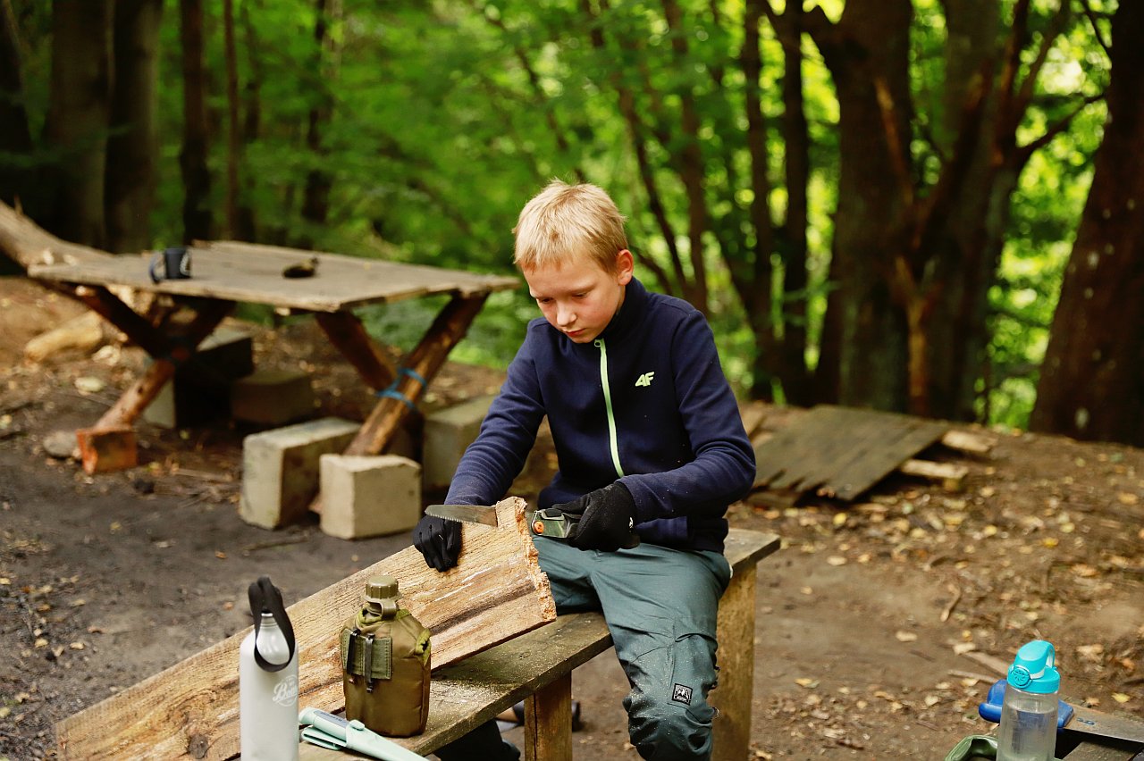 Obóz odbywa się w klimatycznej Bazie Namiotowej w Drzewinie, miejscu, gdzie trenują także grupy militarne – co dodaje atmosfery prawdziwej szkoły przetrwania, ale bez ekstremalnego obciążenia. To bezpieczna, pełna energii i emocji przygoda, która daje dzieciom coś wyjątkowego: poczucie sprawczości, siłę i wspomnienia na całe życie.
