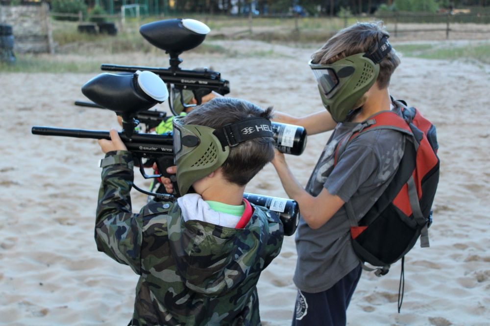 • Paintball - zajęcia na strzelnicy i strzelanie do ruchomych celów. Uczestnicy wyposażeni w specjalne mundury, maski ochronne i markery na kulki z farbą (200 sztuk na uczestnika)