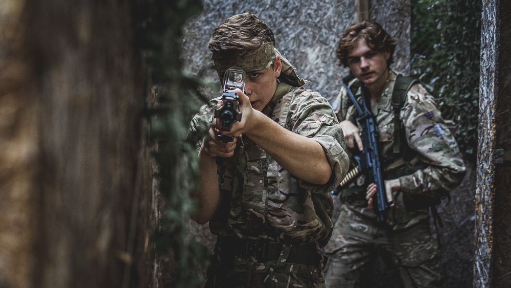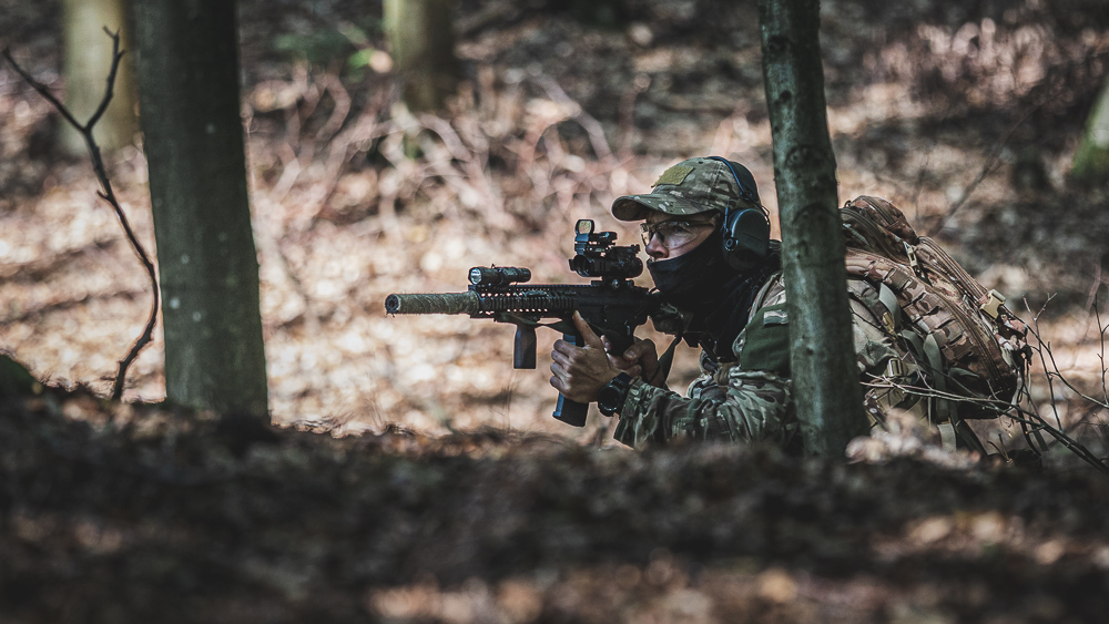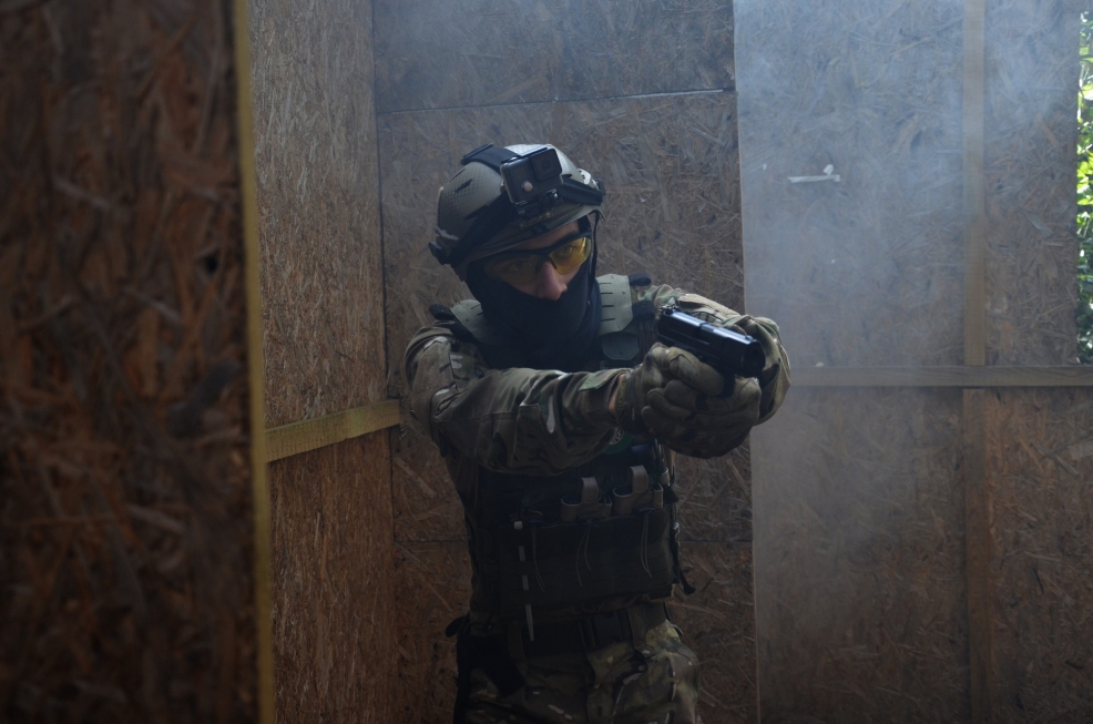 - Techniki działań CQB: wejścia do budynku, czyszczenie pomieszczeń.