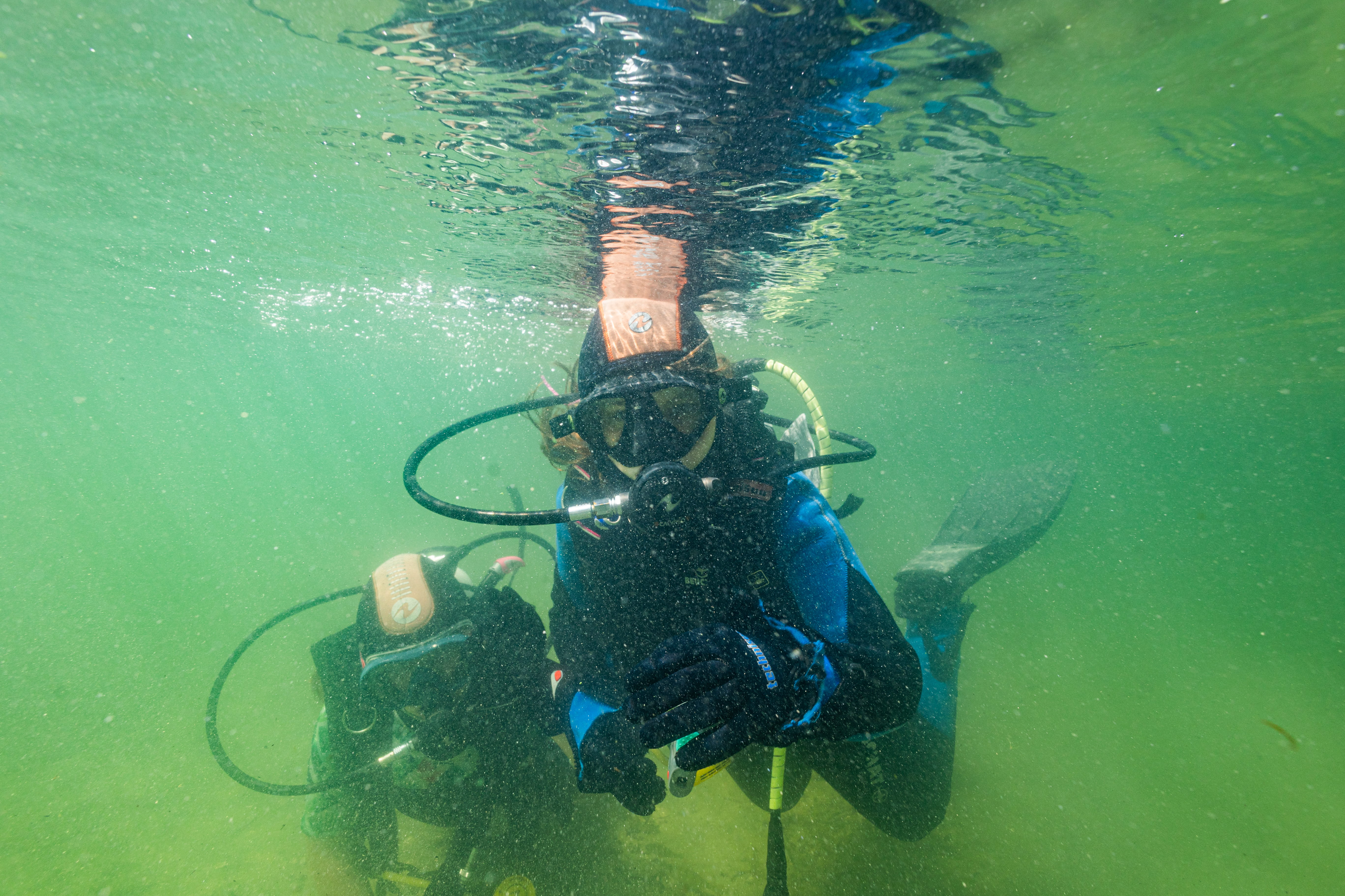 • zajęcia praktyczne w grupie, podczas których uczestnicy poznają budowę sprzętu nurkowego, jego konfigurację oraz prawidłowe użytkowanie,