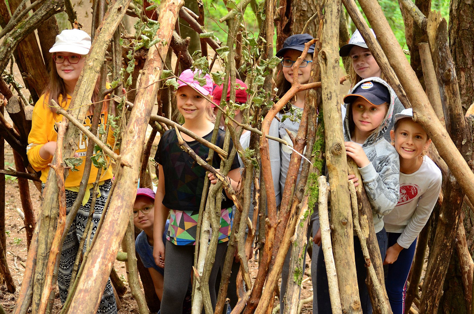• Budowa schronień i szałasów. Jak zbudować trwałą i praktyczną konstrukcję, która uchroni nas przed deszczem i zimnem w samym środku lasu? Wykorzystamy naturalne surowce i przećwiczymy pracę w grupach.