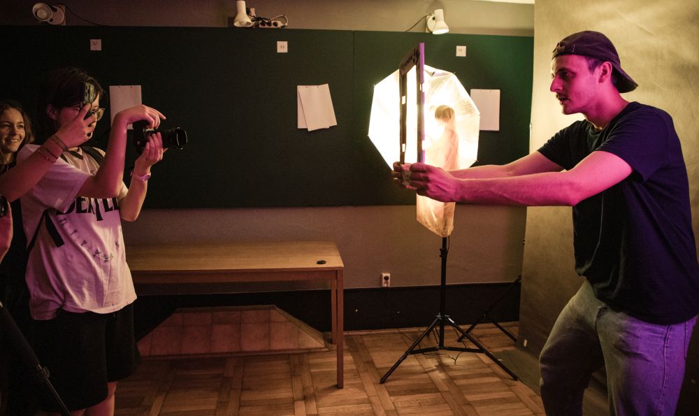 - Studio fotograficzne. Sesje z lampami studyjnymi, blendami, softboxem i tłem przyniosą sporo nowych doświadczeń.